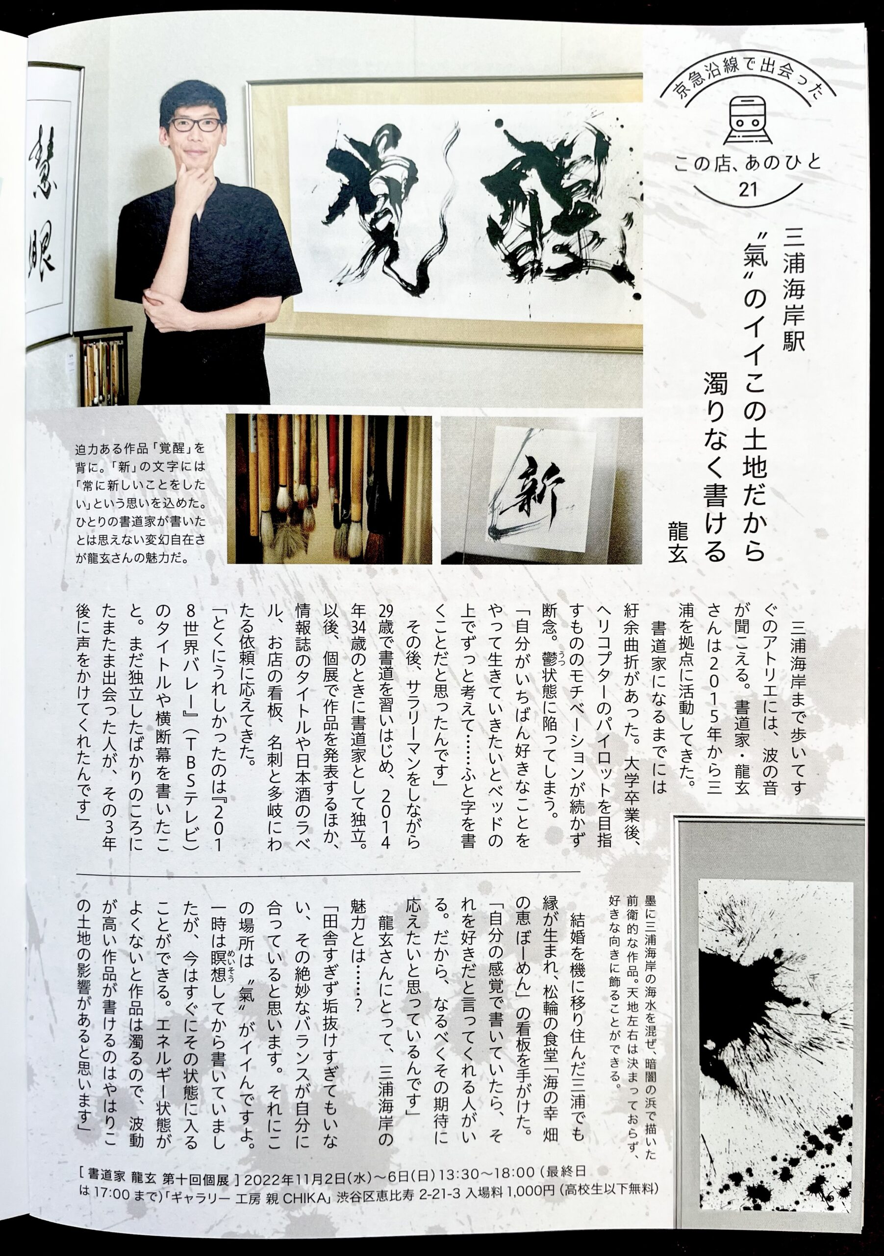 そんな考えを持ちながら29歳(2009年)の春に書道を始め、様々な経験・出逢いなどを経て34歳(2014年)の春に会社員を卒業し、書道家として独立した。